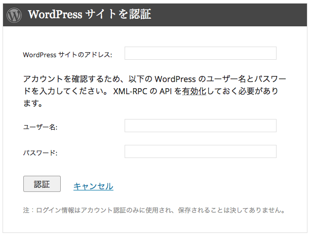 2015年5月14日から追加された「XML-RPC API アクセス制限」機能が問題のようで。